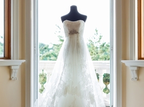 Wedding dresses are treated as their own process. They may be dry cleaned or wet cleaned depending on material, beading, soiling, etc. Wedding dresses are inspected upon arrival and treated for any pre-existing stains. We then clean the dress by itself, either wet clean or dry clean. After cleaning, we perform another inspection before the pressing process. The dress is then hand pressed, placed on a bust form, hung, and covered with a protective bag. If you choose to have us preserve your dress, we will place your dress in a preservation box with acid-free white tissue paper. All of our preservation boxes have a plastic viewing window for your convenience.
